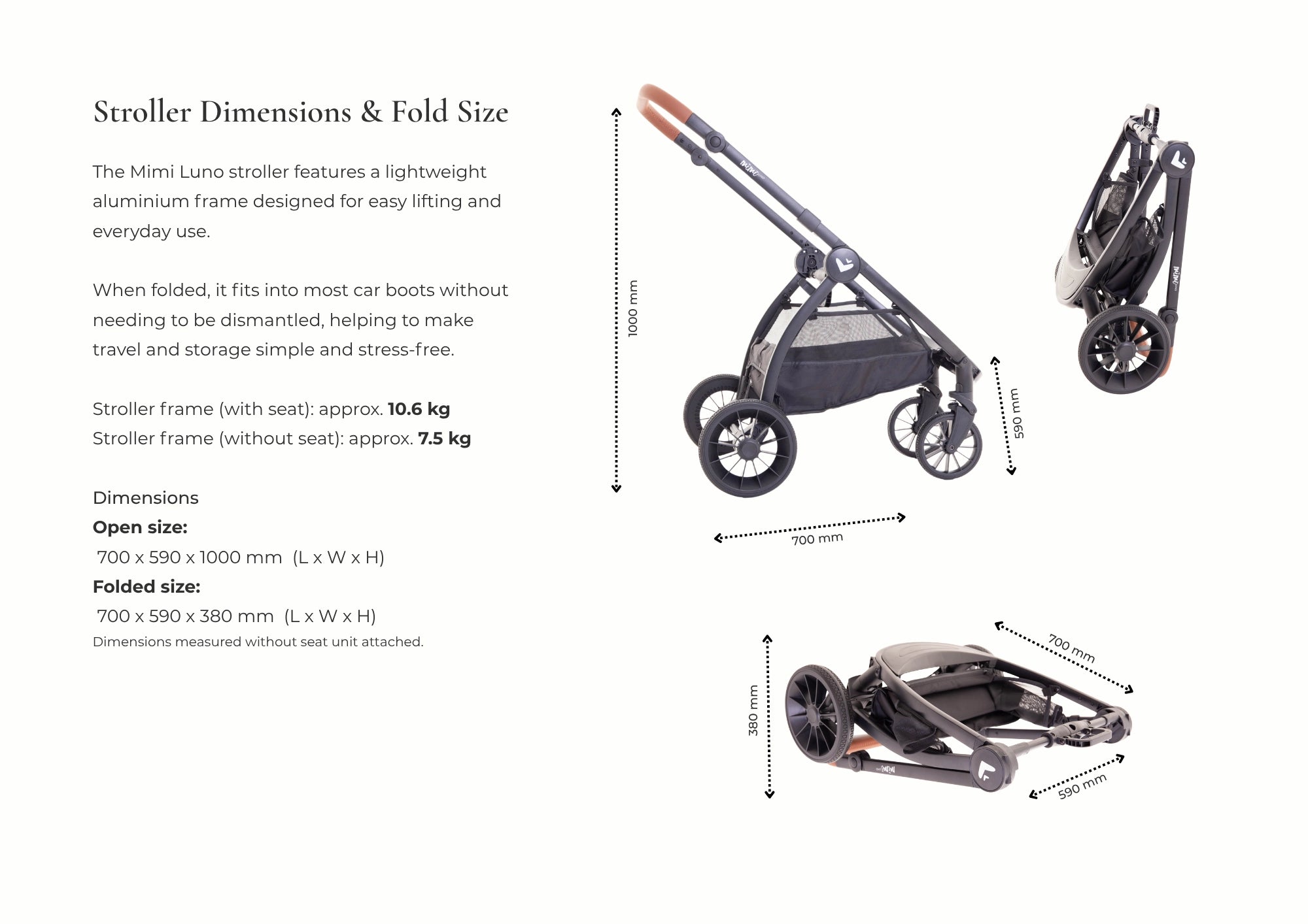 Fits well on peg perego book fold pram and used on international flights with no problem.